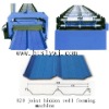 cold roll forming machine joint-hiddenforming machine forming machine tiles making machine 1.Detailed Product Description Function and feature This producing line uses galvanized steel sheet, colored armor plate or aluminum plate as the material plate. The products of it are used as the roof tile and wall panel outside of building, to increase the beauty and durability of the roof tile and wall panel. This line has no limit on processing length; you can set several different data on the computer control cabinet according to your own need. After pressing the button "Confirm", the machine can produce the panel automatically according to the set data. The molding plate surface smooth and not easy to be marked when it is being stamped. So it is easy to install. The product conforms to National Steel Construction Building Standard. The forming rollers is the key of roll forming machine. We use CAD to design and manufacture the rollers. After CNC lathe, the forming rollers will be harden by vacuum heat treatment and finished the profiles again. These processes make the more accurate forming rollers ,avoid the deformation during heat treatment and ensure the rollers preciseness and wear-resisting abili 2.Processing technique and deployment: Processes: DecoilerRoll forming machinePLC systemHydraulic systempost cutOutput table 3.Components of line: No. NameUnitQty1Decoiler set 12Main machine for roll forming set 13Control system set 14Hydraulic system set 15Post cut set 16Output table set 1 4. Technical Specification (1) Manual Un-coiler(Option Hydraulic un-coiler) Un-powered; single head; max.capacity: 5000kg; Coil inner-diameter: 508mm (2) Roll-Forming M/C: Steps:13 Roller Material: 45# steel Voltage:380V/50Hz. line speed:3-6m/min; Rolling chromium thickness:0.05 mm (3)Pressing Die: Stop to press, Post to press Press tool material: 40Cr and heat-treated (4) Cutting Mechanism It adopts hydraulic drive and automatic location to decide the dimention and cut the target products. Match equipment : one set of cutting tool, one hydraulic tank ,one cutter machine. Stop to cut , Post cut cutting length tolerance: ±2mm Cutting tool material: GCr12 with quenched treatment 60-62 (5) Hydraulic System It is controlled by gear wheel oil pump. After filling the hydraulic oil into the hydraulic oil tank ,the pump drive the cutter machine to begin the cutting job.Match equipment: a set of hydraulic tank , a set of hydraulic oil pump, two hydraulic pipes and two sets of electromagnetism valves.Power of the oil pump: 3kw Hydraulic oil :40# (6)Computer control cabinet: It adopts Taida PLC to control. The target piece length is adjustable and digit of it can be adjusted Computed mode has two modes: automatic and manual one. (7)Counter : One counter gauges length, pulses, and decides length